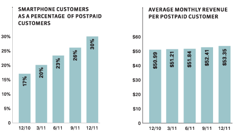 At the end of 2011, smartphone customers were 30 percent of our postpaid base, compared to 17 percent at the end of 2010. And smartphones were