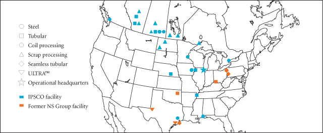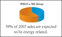 producer in the United States and Canada. What's more, NS Group has accelerated IPSCO's growth into complementary, value-added product lines such as alloy and seamless energy tubulars. Through ULTRATM Premium Oilfield Services, the acquisition has also given IPSCO a growing presence in high performance oilfield connections. The combination of IPSCO and NS Group has also created a fully integrated production platform - from scrap to steel to pipe to field services - with closer proximity to key U.S. energy markets and the capability to produce all the steel required for our growing product offering.