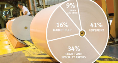 BOWATER'S PRODUCT MIX: Bowater is one of the largest producers of newsprint in North America. In addition, we have worked aggressively in recent years to expand our coated and specialty papers segment. Sales of our coated and specialty product lines now represent 34% of our total sales, compared to 24% of total sales of in 2002. We offer one of the broadest lines of printing paper grades in North America. As a major producer of market pulp in North America, Bowater serves a broad range of customers. Our pulp and paper operations are supported by a system of sawmills, primarily located in Canada, that provide wood fiber for the mills and high-quality lumber that is sold throughout North America. |