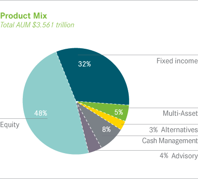 At year-end 2010, products invested primarily in long-term assets represented 88% of total AUM or $3.131 trillion, of which 54% were equity mandates, 36% fixed income accounts, 6% multi-asset class portfolios and 4% alternative investments. The remaining AUM was in cash management products and advisory mandates. Net new business in long-term products totaled $131.2 billion, before giving effect to merger-related outflows. Net inflows in long-term products were offset by net outflows in cash management products, as money market fund yields remained near zero and net distributions from advisory portfolios.