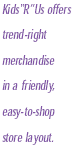 Kids"R"Us has also moved toward a better blend of trend-right merchandise, along with making strides in visual presentation within a friendlier, easy-to-shop layout. The expansion of higher margin non-sportswear businesses such as coats and dresses has also helped make Kids"R"Us a more compelling destination for moms despite the current tough economic climate.