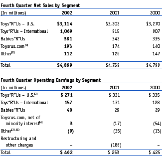 of the restructuring initiatives announced in January 2002, we closed 37 Kids"R"Us stores and 27 Toys"R"Us stores in the United States.