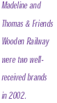 We continued to build our Imaginarium learning category and expanded it to all of our stores in 2002. Items like MadelineTM, LeapFrog® and Thomas & Friends Wooden Railway SystemTM were well received. We'll identify additional opportunities to expand that category even further.