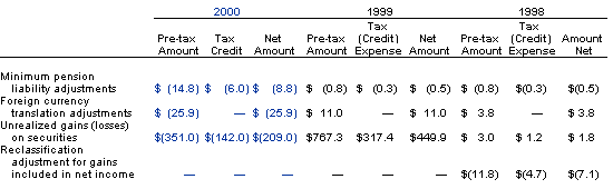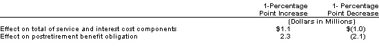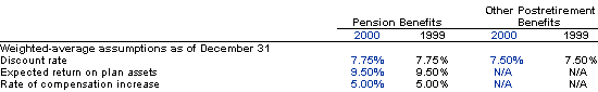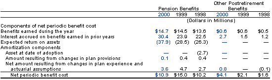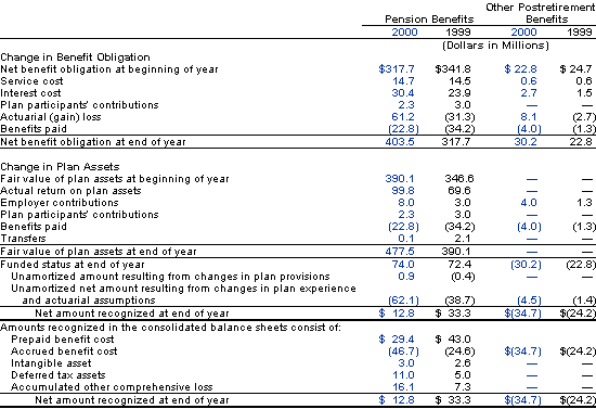 The projected benefit obligation and accumulated benefit obligation for the pension plans with accumulated benefit obligations in excess of plan assets were $57.2 million and $46.7 million, respectively, as of December 31, 2000 and $52.9 million and $42.4 million, respectively, as of December 31, 1999. The pension plans with accumulated benefit obligations in excess of plan assets do not have any underlying assets. A one-percentage point change in assumed health care cost trend rates would have the following effects:
