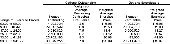 The following table summarizes information about the Plan stock options outstanding at December 31, 2000: