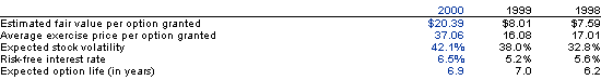 The pro forma amounts for compensation cost are not indicative of the effects on operating results for future periods. The following table presents the estimated weighted-average fair value of options granted under the Plan using the Black-Scholes valuation model and the assumptions used in the calculations (for 1998, stock volatility was estimated based upon a three-year average derived from a study of a Hughes determined peer group):