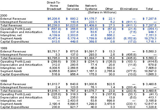 In a separate, but related transaction, Hughes also sold to Boeing its 50% interest in HRL Laboratories LLC (HRL) for $38.5 million, which represented the net book value of HRL at October 6, 2000. During September 2000, Hughes Tele.com (India) Limited sold new common shares in a public offering in India. As a result of this transaction, Hughes equity interest was reduced from 44.7% to 29.2%. Due to the nature of the transaction, Hughes recorded a $23.3 million increase in capital stock and additional paid-in capital. On March 1, 2000, Hughes announced that the operations of DIRECTV Japan Management, Inc., DIRECTV Japan, Inc., and certain related companies (collectively DIRECTV Japan) would be discontinued. Pursuant to an agreement with Japan Digital Broadcasting Services Inc. (now named Sky Perfect Communications, Inc. or Sky Perfect), qualified subscribers to the DIRECTV Japan service were offered the opportunity to migrate to the Sky Perfect service, for which DIRECTV Japan was paid a commission for each subscriber who actually migrated and Hughes acquired a 6.6% interest in Sky Perfect. As a result, Hughes wrote-off its net investment in DIRECTV Japan of $164.6 million and accrued exit costs of $403.7 million and involuntary termination benefits of $14.5 million. Accrued exit costs consist of claims arising out of contracts with dealers, manufacturers, programmers and others, satellite transponder and facility and equipment leases, subscriber migration and termination costs, and professional service fees and other. The write-off and accrual were partially offset by the difference between the cost of the Sky Perfect shares acquired and the estimated fair value of the shares ($428.8 million), as determined by an independent appraisal, and by $40.2 million for anticipated contributions from other DIRECTV Japan shareholders. The net effect of the transaction was a charge to other, net of $170.6 million at March 31, 2000. During 2000, $193.9 million and $8.3 million were paid related to accrued exit costs and involuntary termination benefits, respectively. During the second quarter of 2000, $62.4 million of payments were received from the other DIRECTV Japan shareholders, resulting in a credit adjustment of $22.2 million to other, net. In the fourth quarter of 2000, $106.6 million of accrued exit costs were reversed and $0.6 million of involuntary termination benefits were added, resulting in a net credit adjustment to other, net of $106.0 million. The adjustments made to the exit cost accrual were primarily attributable to earlier than anticipated cessation of the DIRECTV Japan broadcasting service, greater than anticipated commission payments for subscriber migration and settlements of various contracts and claims. The amounts remaining for accrued exit costs and involuntary termination benefits were $103.2 million and $6.8 million, respectively, at December 31, 2000. DIRECTV Japan employed approximately 290 personnel as of March 31, 2000, of which 244 were terminated during the year. The remaining employees at December 31, 2000 will be terminated during the first half of 2001. In the fourth quarter of 2000, Sky Perfect completed an initial public offering, at which date the fair value of Hughes interest (diluted by the public offering to approximately 5.3%) in Sky Perfect was approximately $343 million. At December 31, 2000, the market value of Hughes investment further declined to $159 million. Based on analysis of recent investment research regarding Sky Perfect, Hughes determined that a portion of the decline was other than temporary, resulting in a charge to other, net and a write down of the investment of $86.0 million. The portion of the decline not considered other than temporary, which amounted to $183.4 million, pre-tax, was recorded as a mark-to-market adjustment to other comprehensive income for the year ended December 31, 2000. On January 13, 2000, Hughes announced the discontinuation of its mobile cellular and narrowband local loop product lines at Hughes Network Systems. As a result of this decision, Hughes recorded a fourth quarter 1999 pre-tax charge to continuing operations of $272.1 million. The charge represents the write-off of receivables and inventories, licenses, software and equipment with no alternative use. Note 18: Derivative Financial Instruments and Risk Management In the normal course of business, Hughes enters into transactions that expose it to risks associated with foreign exchange rates. Hughes utilizes derivative instruments in an effort to mitigate these risks. Hughes policy is to not enter into speculative derivative instruments for profit or execute derivative instrument contracts for which there are no underlying exposures. Instruments used as hedges must be effective at reducing the risk associated with the exposure being hedged and designated as a hedge at the inception of the contract. Accordingly, changes in market values of hedge instruments are highly correlated with changes in market values of the underlying transactions, both at the inception of the hedge and over the life of the hedge contract. Hughes primarily uses foreign exchange contracts to hedge firm commitments denominated in foreign currencies. Foreign exchange contracts are legal agreements between two parties to purchase and sell a foreign currency, for a price specified at the contract date, with delivery and settlement in the future. The total notional amounts of contracts afforded hedge accounting treatment at December 31, 2000 and 1999 were not significant. Hughes is exposed to credit risk in the event of non-performance by the counterparties to its foreign exchange contracts. While Hughes believes this risk is remote, credit risk is managed through the periodic monitoring and approval of financially sound counterparties. Note 19: Segment Reporting Hughes segments, which are differentiated by their products and services, include Direct-To-Home Broadcast, Satellite Services, a