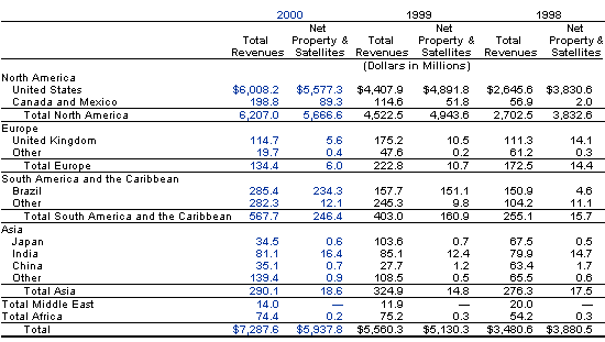 The following table presents revenues earned from customers located in different geographic areas. Property is grouped by its physical location. All satellites are reported as United States assets.