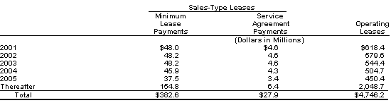 Hughes capitalized interest of $82.4 million, $65.1 million and $55.3 million during 2000, 1999 and 1998, respectively, as part of the cost of its satellites under construction. Note 4: Leasing Activities Future minimum payments due from customers under sales-type leases and related service agreements, and noncancelable satellite transponder operating leases as of December 31, 2000 are as follows: