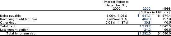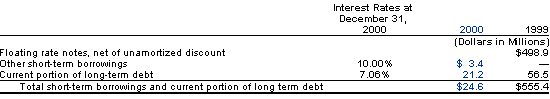Included in other liabilities and deferred credits are long-term programming contract liabilities which totaled $536.6 million and $627.1 million at December 31, 2000 and December 31, 1999, respectively. Note 8: Short-Term Borrowings and Long-Term Debt Short-Term Borrowings and Current Portion of Long-Term Debt