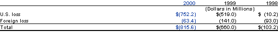 Loss from continuing operations before income taxes, minority interests and cumulative effect of accounting change included the following components: