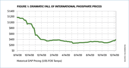 The losses in our fertilizer business stemmed from a dramatic decline in demand for end products that began in the second half of 2008. In response, both international and local Brazilian prices for fertilizers collapsed and continued to trend downward for much of 2009 (Figure 1). For Bunge, this caused an ongoing mismatch between market prices and inventory costs, resulting in negative margins.