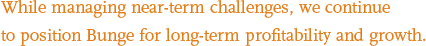 While managing near-term challenges, we continue to position Bunge for long-term profitability and growth.