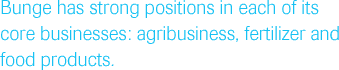 logistics and destination marketing capabilities. 2007 saw Bunge secure the rights to coordinate all agricultural shipments through the Port of Brunswick, Georgia, in the United States. When compared to constructing a large new terminal in Santos, Brazil, which we did over the past several years, the Brunswick arrangement is relatively small, but its size belies its importance. By increasing our capabilities on the East Coast, the agreement will provide another point through which we can supply U.S. exports to the Mediterranean and Latin America.