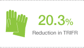 In 2010/11, we recorded 55 Total Recordable Injuries (TRIs), 16 of which were Lost Time Injuries (LTIs). This compares to 83 TRIs and 16 LTIs last year. Our Total Recordable Injury Frequency Rate decreased from 19.79 to 15.77, while our Lost Time Injury Frequency Rate increased from 3.82 to 4.59.*