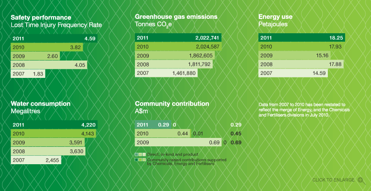 Our division was created following the merger of the Energy, and Chemicals and Fertilisers divisions, announced in April 2010. As this is our first year of reporting as WesCEF, historical data was created by combining data previously reported separately by the two divisions.