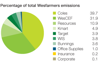 We are also an investor in two joint ventures and a company in Australia which report under the NGER Act – the Bengalla mine in the Hunter Valley, New South Wales (40 per cent owned by Wesfarmers and operated by Coal and Allied); Queensland Nitrates Pty Ltd at Moura in Queensland (50 per cent owned by Wesfarmers and operated as a separate management entity); and the 50 per cent owned Wespine sawmill in Western Australia. Our equity share of the 2009/10 emissions (the most recent publicly available data) reported under the NGER Act by these three businesses was 589,546 tonnes CO2e. The 2010/11 NGER Act reports by these businesses, and Wesfarmers Limited, will be published in February 2012.