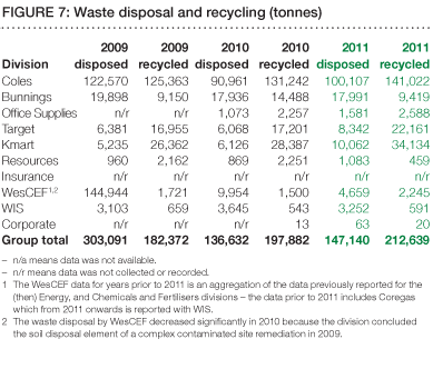 The information in this section includes data from five years wherever possible. Some of our businesses find that water and waste are difficult to accurately measure because of the shared location of their facilities, so they have developed estimation techniques, while some of the former Coles group of companies did not collect some of this data prior to being acquired by Wesfarmers in November 2007. These estimations or lack of recorded data are highlighted in the report.