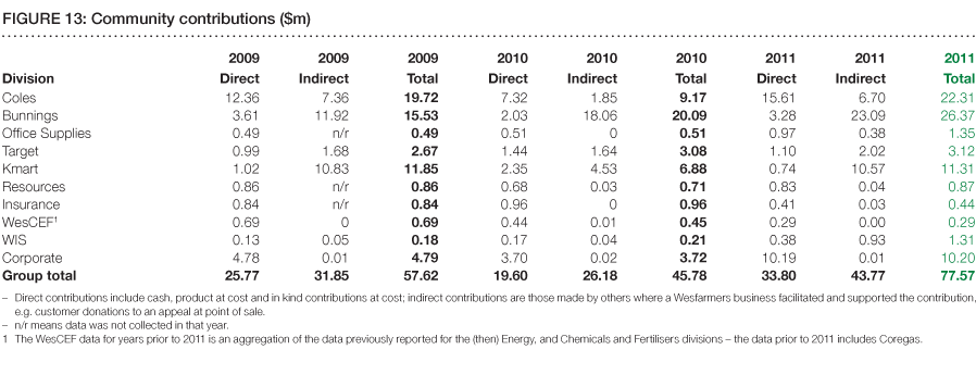 Figure 13 provides detailed data on our direct and indirect community partnerships and contributions during 2010/11.