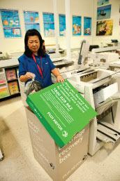 Officeworks commitment to environmental sustainability continued throughout 2009/10. We continued to run the trial of the innovative e-waste recycling project, Byteback, through our Ballarat and Dandenong stores in Vic, in conjunction with Sustainability Victoria, the Australian Information Industry Association and the Byteback Partners (www.bytebackaustralia.com.au) as well as embarking on additional trials and launching new programs.