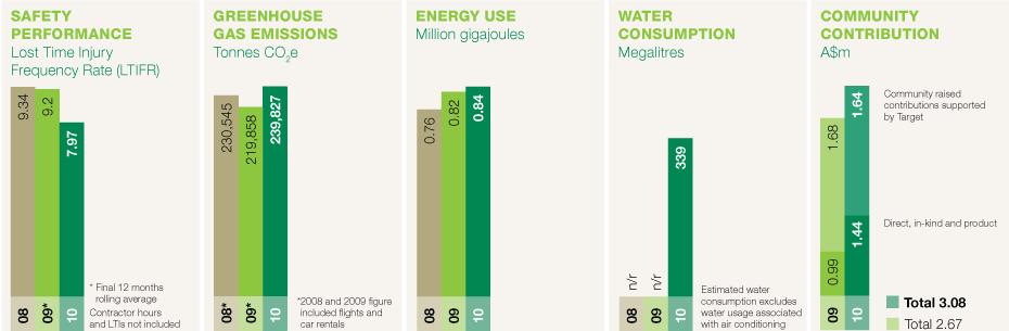 Target’s community investment focused on our strategy of ‘safe, happy families’ with our total direct contribution exceeding $1.44 million. In addition to this our customers, suppliers and team members contributed $1.64 million resulting in a total community contribution in excess of $3.08 million to various partners including the Bonnie Babes Foundation, SIDS & Kids and UnitingCare Australia.