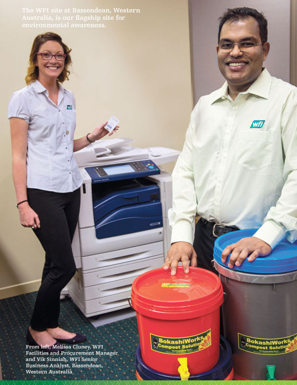 The WFI site at Bassendean, Western Australia, is our flagship site for environmental awareness. For example, during the year, a BokashiWorks bin trial (for compost) was initiated, and plans are in place for the installation of rainwater tanks. The ‘Minus One’ initiative was also introduced, which reduces paper consumption by decreasing print fonts by one point.