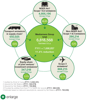 Our equity share of the 2011/12 emissions reported under the NGER Act by these three businesses is 347,018 tonnes CO2e. The 2011/12 NGER Act reports by these businesses and Wesfarmers will be published in February 2013.