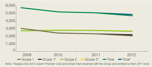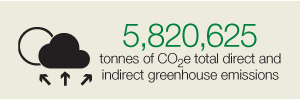 Our total direct and indirect (Scope 1, 2 and 3) greenhouse emissions for the Group in 2011/12 were 5,820,625 tonnes CO2e. This figure excludes our equity share of joint venture and transport emissions in our supply chain as we have no direct operational control over these activities.