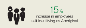 Over the past year, three business units and Corporate Office implemented Aboriginal employment programs with customised recruitment, training and support mechanisms. An additional four business units supported community-driven Aboriginal employment programs. As a result, our overall Aboriginal employee numbers increased from 1,012 to 1,164. This is 0.6 per cent of our total employees.
