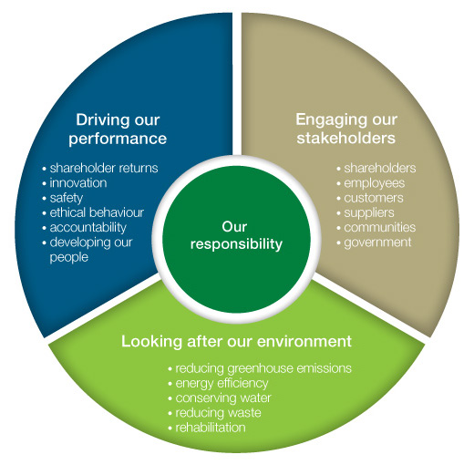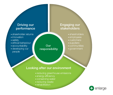 Wesfarmers’ objective is to provide a satisfactory return to our shareholders. We believe to do this effectively our businesses need to focus on three areas to ensure we remain a sustainable business: engaging our stakeholders; looking after our environment; and driving our performance.