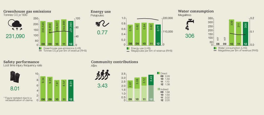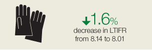 In 2011/12 we maintained our commitment to the safety and development of the Target team through rigorous implementation of our SafetyCARE system at all sites. This year, our LTIFR was 8.01, slightly down compared to last year’s result of 8.14.