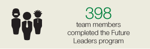 This year we continued to expand our development programs and foster the knowledge and skills of our team. During the year, 398 team members completed our successful Future Leaders program. After graduating, our future managers continue with the Target Store Leadership program, which provides effective learning and development. We currently have 616 team members enrolled in this program. To date, 11 team members have graduated with Diplomas in Business Management and a further 30 team members are currently undertaking this qualification. In 2012 we commenced the development and implementation of a Target graduate program.