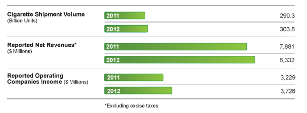 - PMI’s cigarette shipment volume in EEMA increased by 4.7%, mainly reflecting improved market conditions and higher share in Egypt, a higher market share in Russia, and a higher total market and share in Turkey.