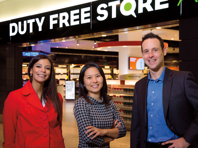 From left to right, Rasha Muallem, Marketing Executive Short-Term Assignment, Cindy Kao, Internal Controls Analyst, and Justin Hunt, Senior Information Systems Analyst, are part of our multicultural duty free organization of over 160 people based in nearly 30 markets that supplies over 850 brand variants to close to 150 markets covering approximately 4,000 duty and tax-free outlets worldwide.