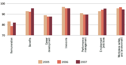 For the past six years, PPC’s annual IPM survey has given all employees the opportunity to express their views and rate the organisation on critical processes, including understanding the PPC vision, employee benefits, leadership behaviour, remuneration, training, coaching and communication. Participation in the survey is confidential. Importantly, the results of the survey are analysed by each site and by management on a centralised basis, with the purpose of identifying and addressing areas of concern and reinforcing positive trends. |