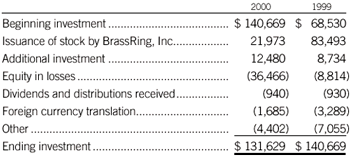 On September 29, 1999, the Company merged its career fair and HireSystems businesses together and renamed the combined operations BrassRing, Inc. On the same date, BrassRing issued stock representing a 46 percent equity interest to two parties under two separate transactions for cash and businesses with an aggregate fair value of $87,000,000. As a result of this transaction, the Companys ownership of BrassRing was reduced to 54 percent and the minority investors were granted certain participatory rights. As such, the Company de-consolidated BrassRing on September 29, 1999 and recorded its investment under the equity method of accounting. The 1999 increase in the basis of the Companys investment in BrassRing resulting from this transaction of $34,571,000, net of taxes, has been recorded as contributed capital. During 2000, SBrassRing issued stock to various parties in connection with its acquisitions of various career fair and recruiting services companies. The effect of these transactions reduced the Companys investment interest in BrassRing to 42 percent, from 54 percent at January 2, 2000, and increased the Companys investment basis in BrassRing by $13,332,000, net of taxes. The increase in investment basis has been recorded as contributed capital. Cost Method Investments. The Companys cost method investments consist of minority investments in non-public companies where the Company does not have significant influence over the investees operating and management decisions. Most of the companies represented by these cost method investments have concentrations in Internetrelated business activities. At December 31, 2000 and January 2, 2000, the carrying value of the Companys cost method investments was $48,617,000 and $30,009,000, respectively. Cost method investments are included in Deferred Charges and Other Assets in the Consolidated Balance Sheets. During 2000 and 1999, the Company invested $42,459,000 and $33,549,000, respectively, in companies constituting cost method investments and recorded charges of $23,097,000 and $13,555,000, respectively, to write-down cost method investments to estimated fair value. The company made no significant investments in cost method investments during 1998. Charges recorded to write-down cost method investments are included in Other (expense) income, net in the Consolidated Statements of Income. During 2000, proceeds from sales of cost method investments were $7,070,000, and gross realized gains on such sales were $6,570,000. There were no sales of cost method investments in 1999 or 1998. Gross realized gains or losses upon the sale of cost method investments are included in Other (expense) income, net in the Consolidated Statements of Income. I D I INCOME TAXES The provision for income taxes consists of the following (in thousands):