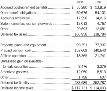 Deferred income taxes at December 31, 2000 and January 2, 2000 consist of the following (in thousands):