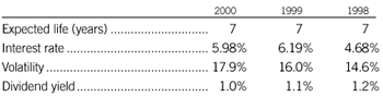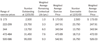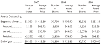 All options were granted at an exercise price equal to or greater than the fair market value of the Companys common stock at the date of grant. The weighted-average fair value for options granted during 2000, 1999, and 1998 was $161.15, $157.77, and $126.57, respectively. The fair value of options at date of grant was estimated using the Black-Scholes method utilizing the following assumptions:
