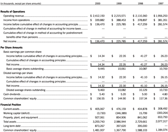 See Notes to Consolidated Financial Statements for the summary of significant accounting policies and additional information relative to the years 1998 2000.