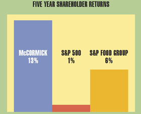 During the past five years, our annual sales have increased an average of 7%. In that same time, our earnings per share have grown an average of 10% annually. Although our share price declined in 2005, our total shareholder return has exceeded that of the S&P 500 Stock Index and the average of other food companies for the last five years.