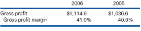 The increase in margin was attributable to initiatives to reduce costs, pricing actions taken early in 2006 in response to the higher costs of certain materials, employee benefits and energy, as well as a more favorable product mix. Included in cost of goods sold were restructuring charges for production facilities that were being closed. These charges reduced gross profit margin in 2006 by 0.5%. Also, gross profit margin in 2005 was negatively impacted by higher costs of vanilla.