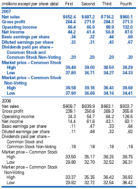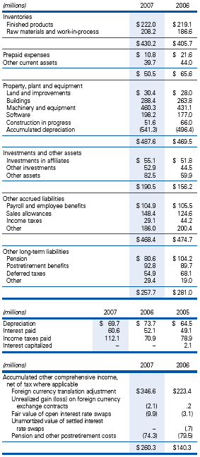 | 15. SUPPLEMENTAL FINANCIAL STATEMENT DATA Supplemental income statement, balance sheet and cash flow information follows: ![]() Dividends paid per share were $0.80 in 2007, $0.72 in 2006 and $0.64 in 2005.