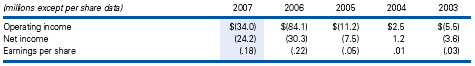 The historical financial summary includes the following impact of restructuring activities, and in 2004 the net gain from a special credit: