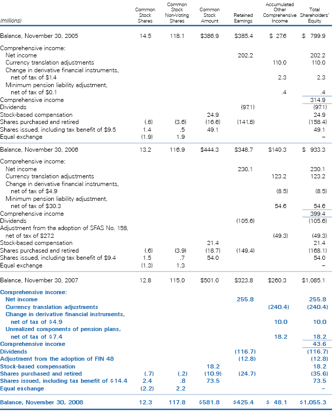 Consolidated Statement of Shareholders' Equity See Notes to Consolidated Financial Statements, pages 45-63