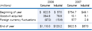 The changes in the carrying amount of goodwill by segment for the years ended November 30, 2008 and 2007 are as follows: