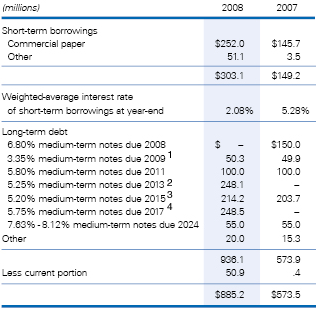 (1) The fixed interest rate on the 3.35% medium-term notes due in 2009 is effectively converted to a variable rate by interest rate swaps through 2009. Net interest payments are based on LIBOR minus 0.21% during this period.