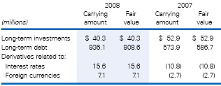 The carrying amount and fair value of financial instruments at November 30, 2008 and 2007 were as follows: