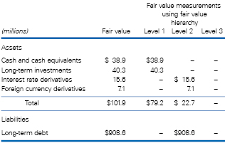The fair values of long-term investments are based on quoted market prices from various stock and bond exchanges. The long-term debt fair values are based on quotes for like instruments with similar credit ratings and terms. The fair values for interest rate and foreign currency derivatives are based on quotations from various banks for similar instruments using models with market based inputs.