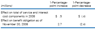For 2009, the assumed annual rate of increase in the cost of covered health care benefits is 9.0% (9.8% last year). It is assumed to decrease gradually to 5.0% in the year 2014 (5.0% by 2014 last year) and remain at that level thereafter. Changing the assumed health care cost trend would have the following effect: