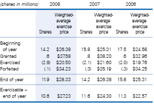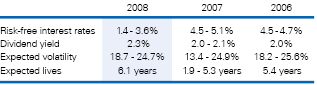 The per share weighted-average fair value for all options granted was $7.20, $6.83 and $7.47 in 2008, 2007 and 2006, respectively. These fair values were computed using the following range of assumptions for our various stock compensation plans for the years ended November 30: